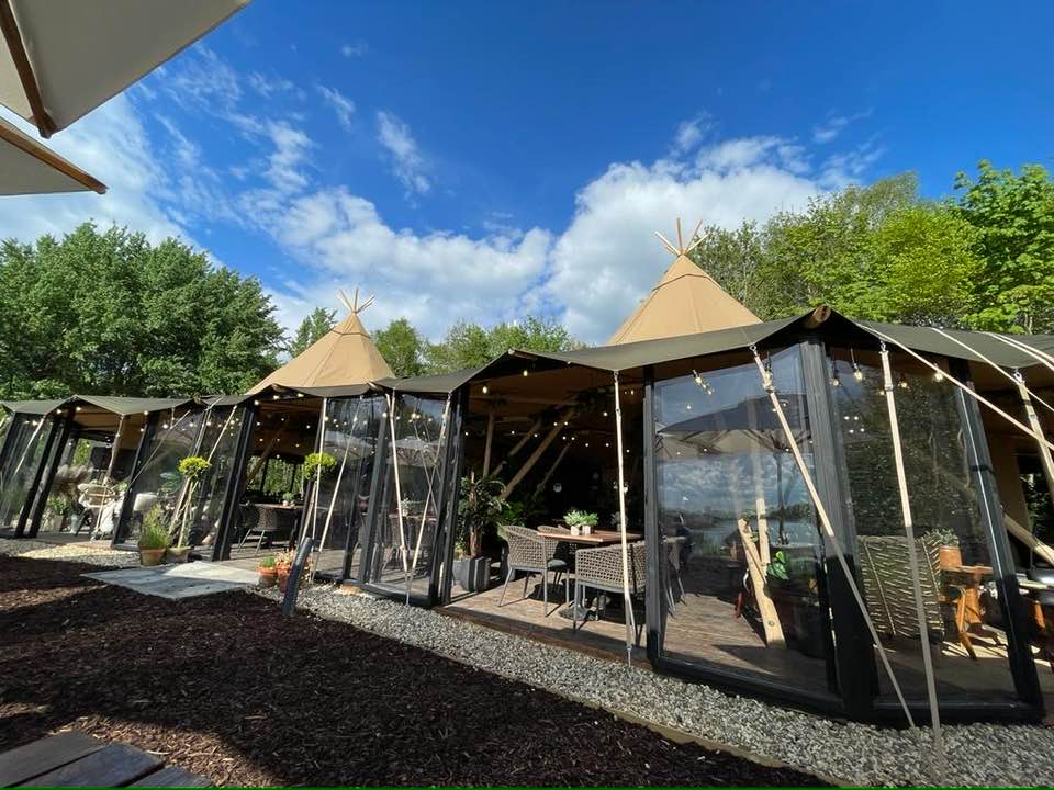 The interior eating and drinking areas are made up of two luxuriously decorated and conjoined tipis tucked among the trees and overlooking the sailing lake. It was a gloriously hot and sunny day when I went to the opening, so I was able to sit outside to enjoy alfresco dining amidst the quiet and serenity of the picturesque lake backdrop.